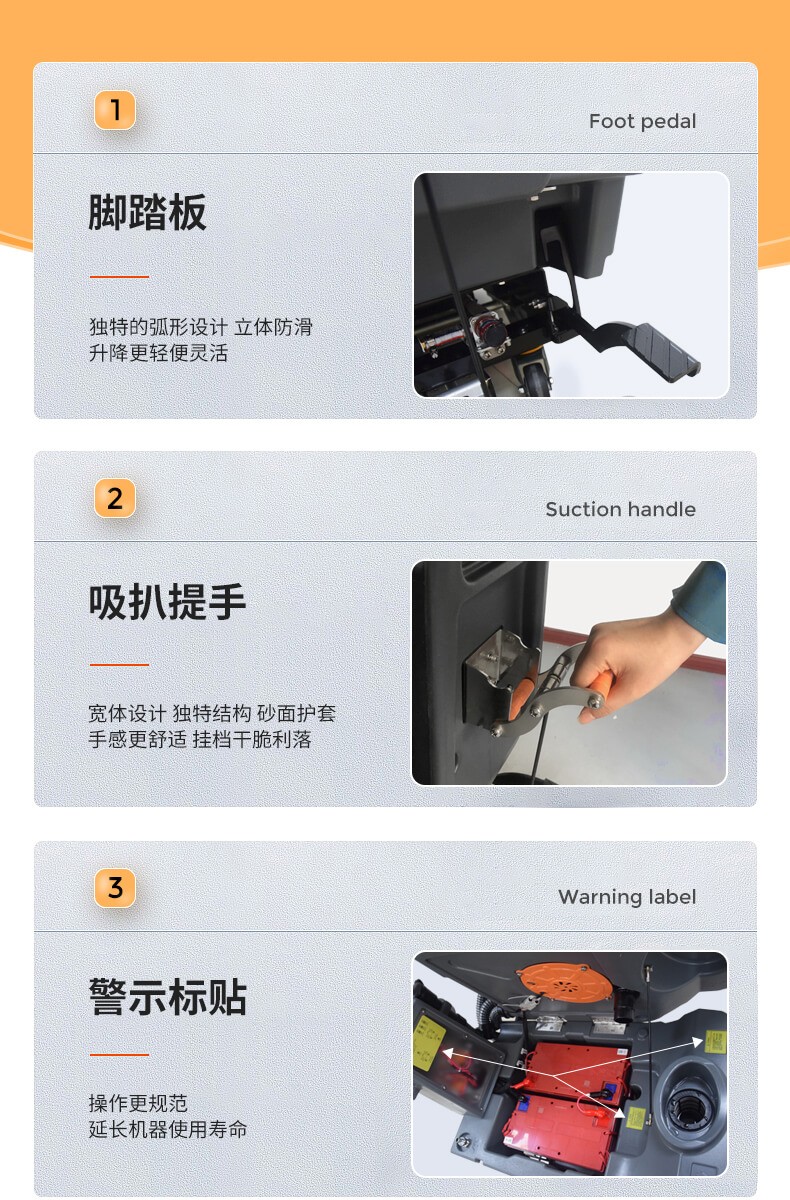 用途:手推式洗地機,是醫院、學校、商場、超市、工廠等場所的選擇。擦洗、吸干一次完成,使用靈活輕便,簡易操作易上手,提升工作效率和清潔質量。